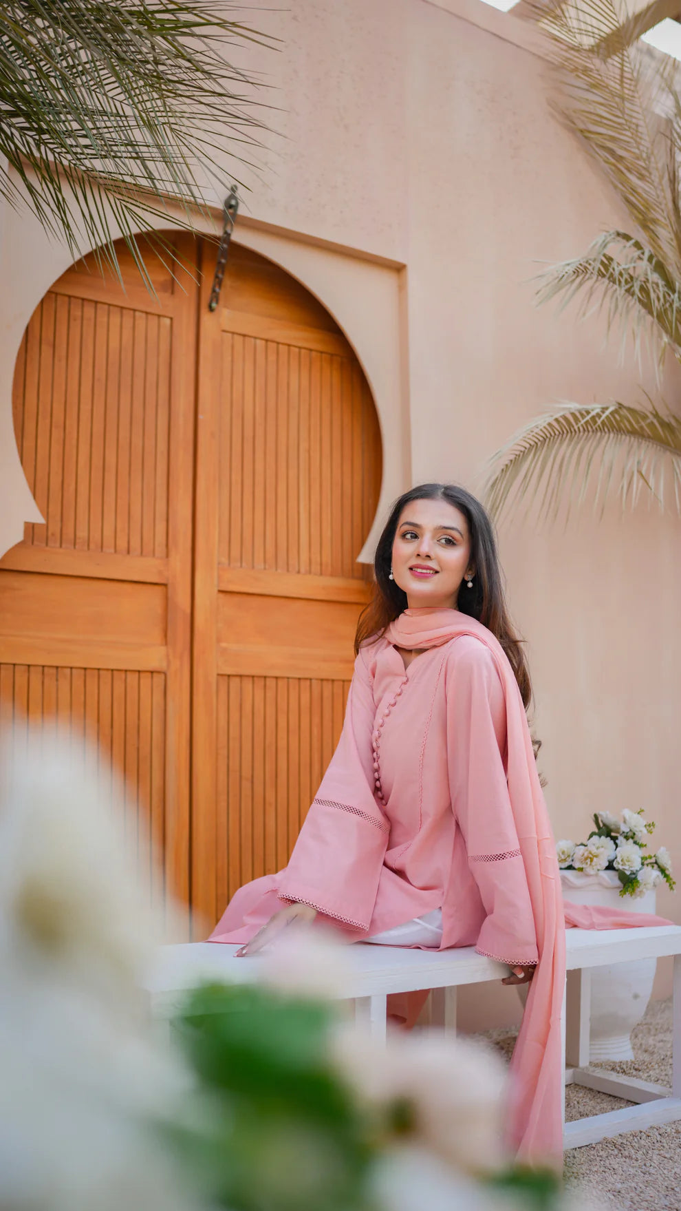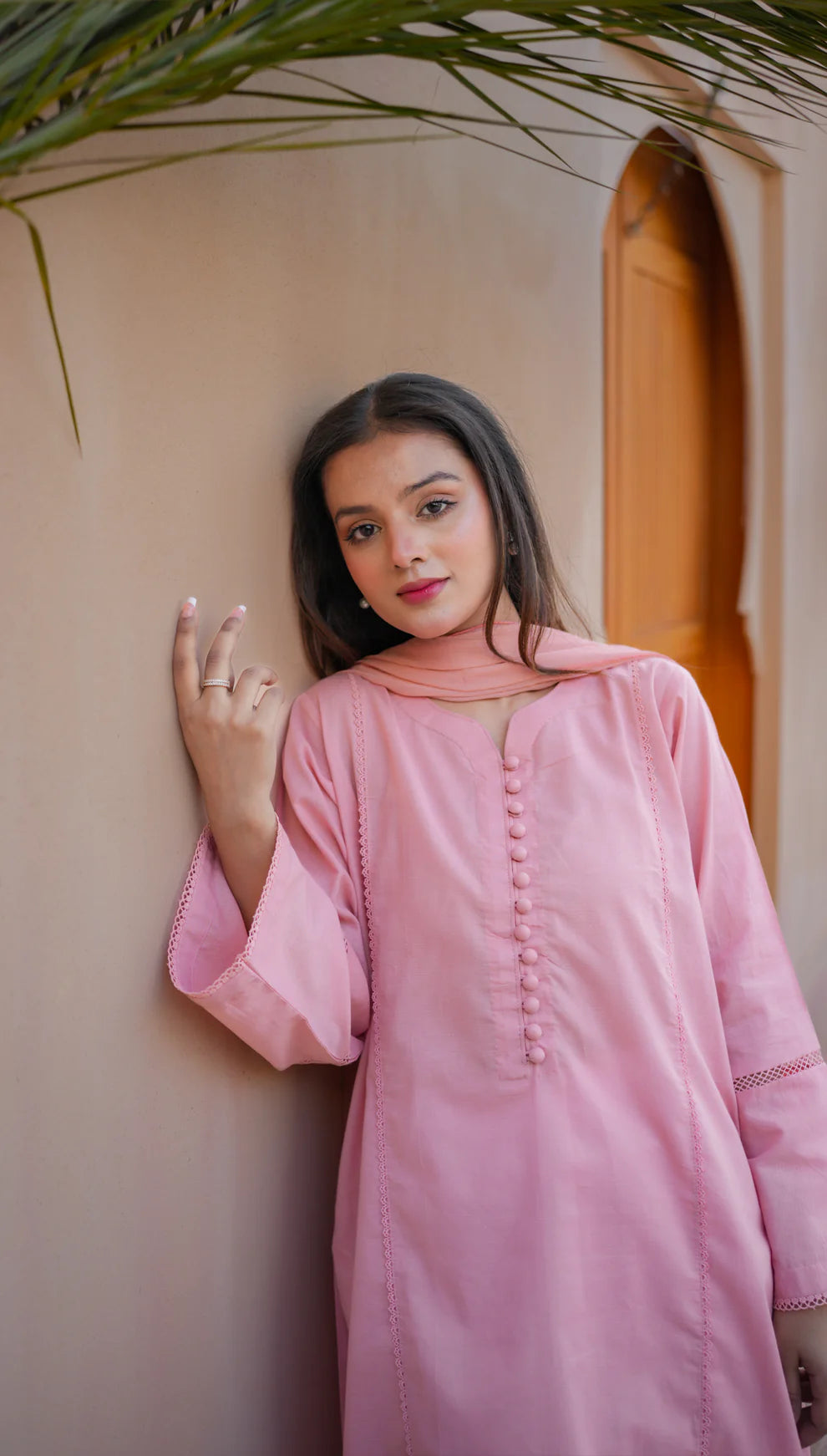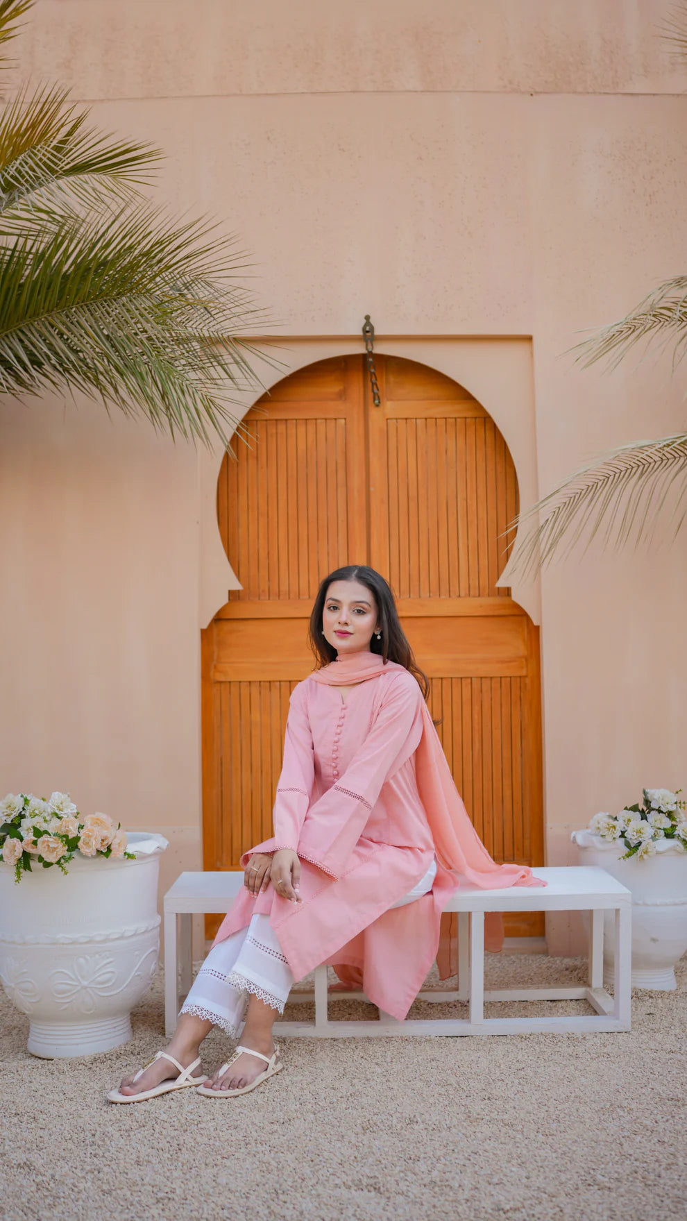 Simplicity is the ultimate sophistication. Elevate your wardrobe with our latest creation featuring straight shirt with lace details. Paired with chiffon dupatta to complete the look.