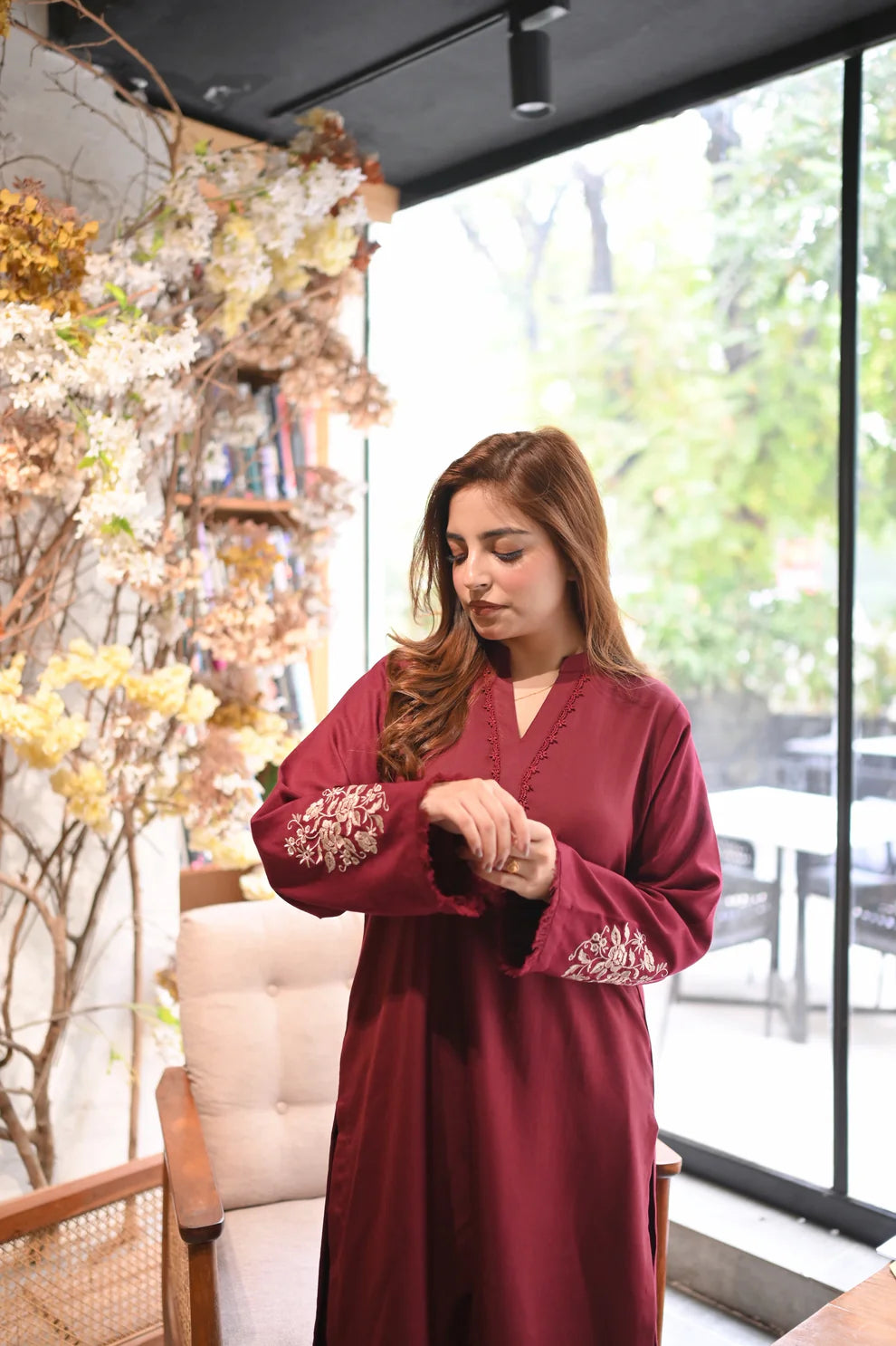 Stand out this summer in 'Reign' two piece ensemble featuring intricate embroidery and details on the sleeves, paired with straight pants