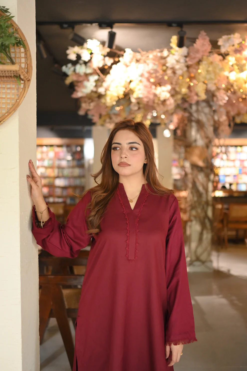 Stand out this summer in 'Reign' two piece ensemble featuring intricate embroidery and details on the sleeves, paired with straight pants